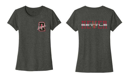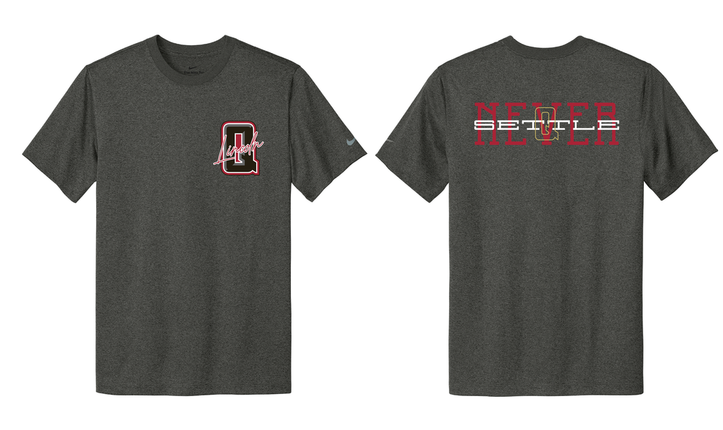 Quakes Lincoln print on the left chest with Never Settle across the back.